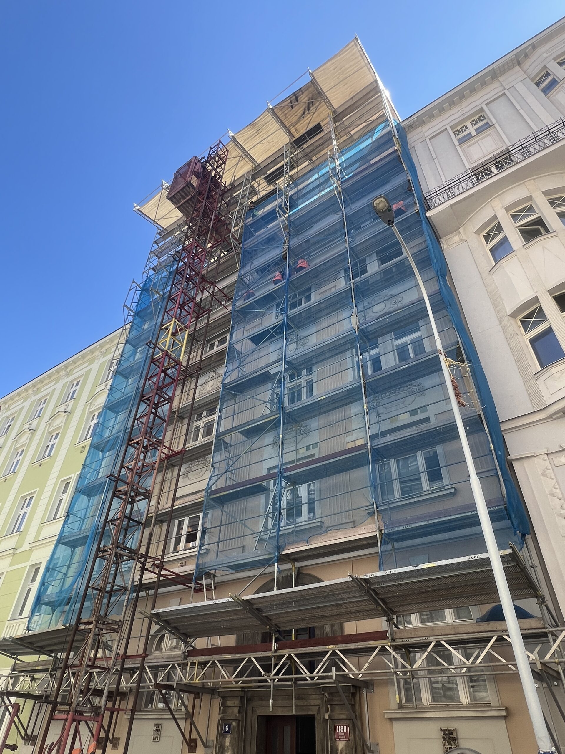 Celková rekonstrukce domu, přístavba výtahu a výstavba 5 nových půdních bytů.